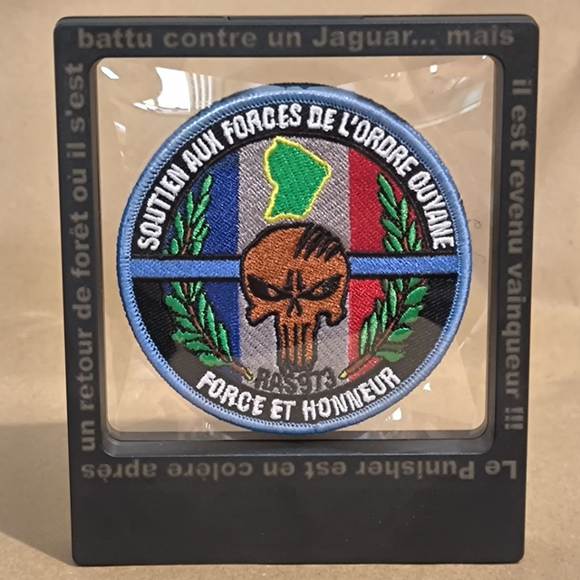 Boitier collector avec les deux patchs "Angry Punisher 973", le AP973 Forces de l'Ordre et le AP973 Forces Armées.